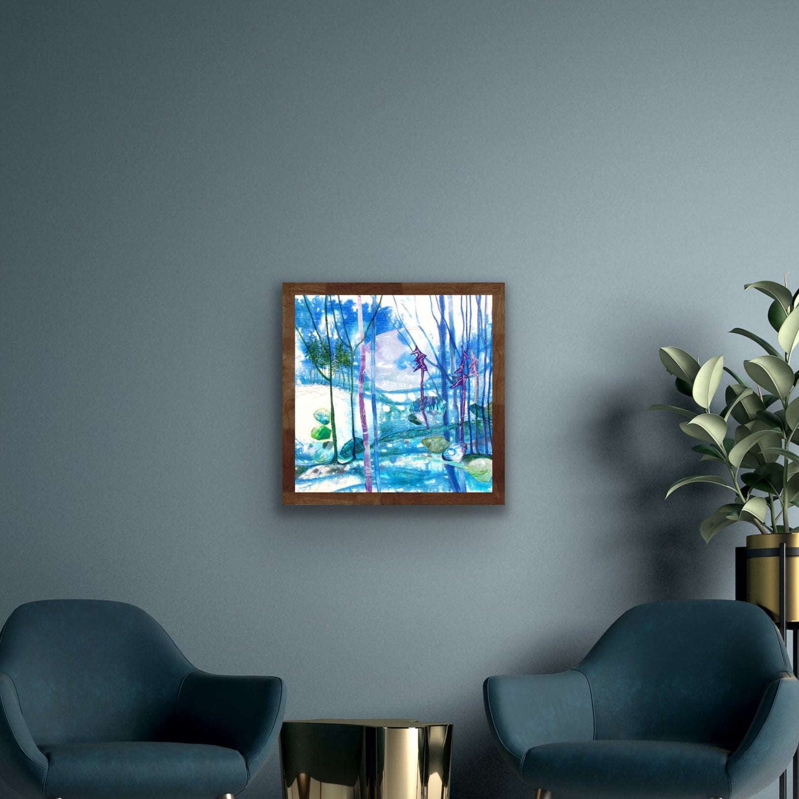This one-of-a-kind textile piece measures 10" x 10" and is printed on premium canvas. Each piece is enhanced with intricate overstitching, offering a fresh and unique take on the original design. It comes in a sleek matte black metal floater frame, ready to hang, and is signed and numbered on the back with a certificate of authenticity.  The front has my stitched signature (but you may have to look very closely to find it).