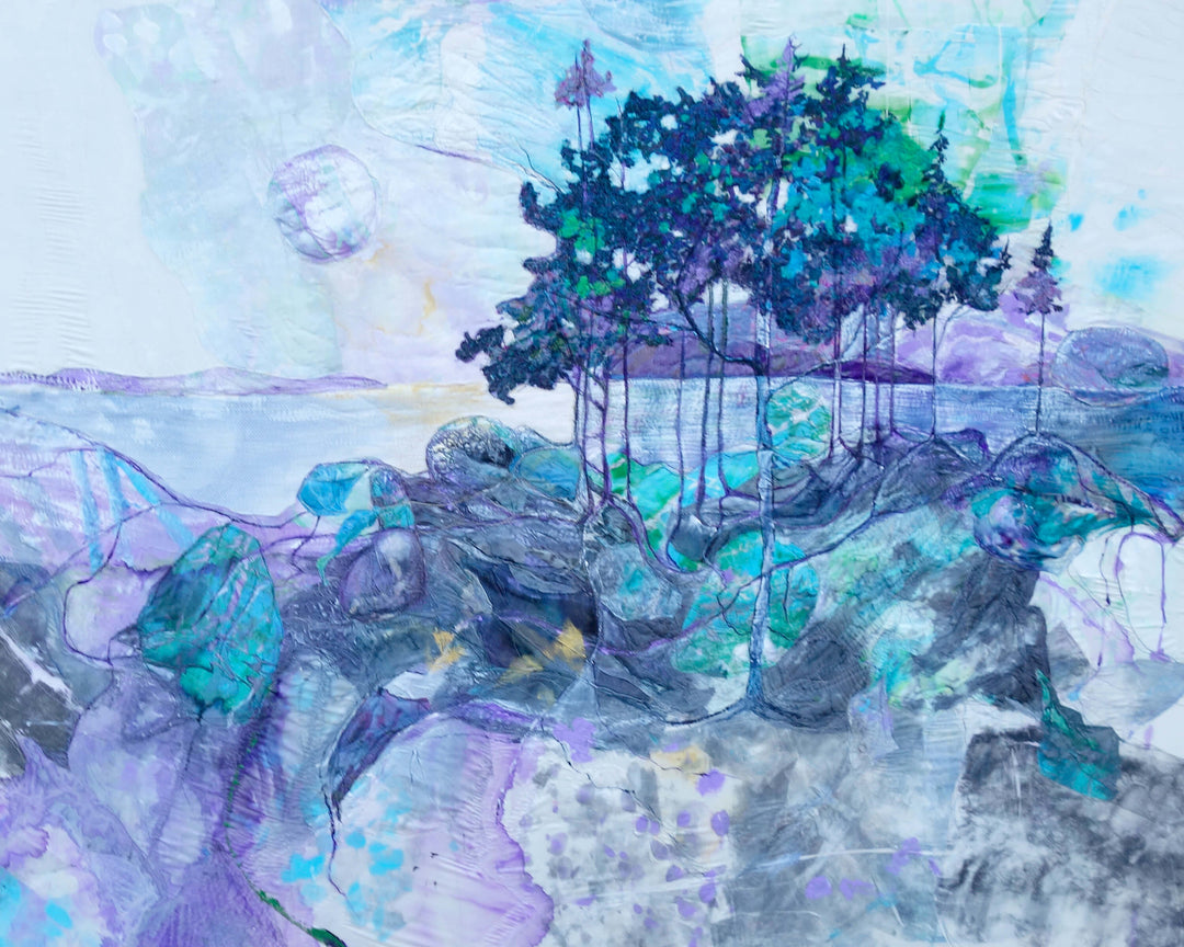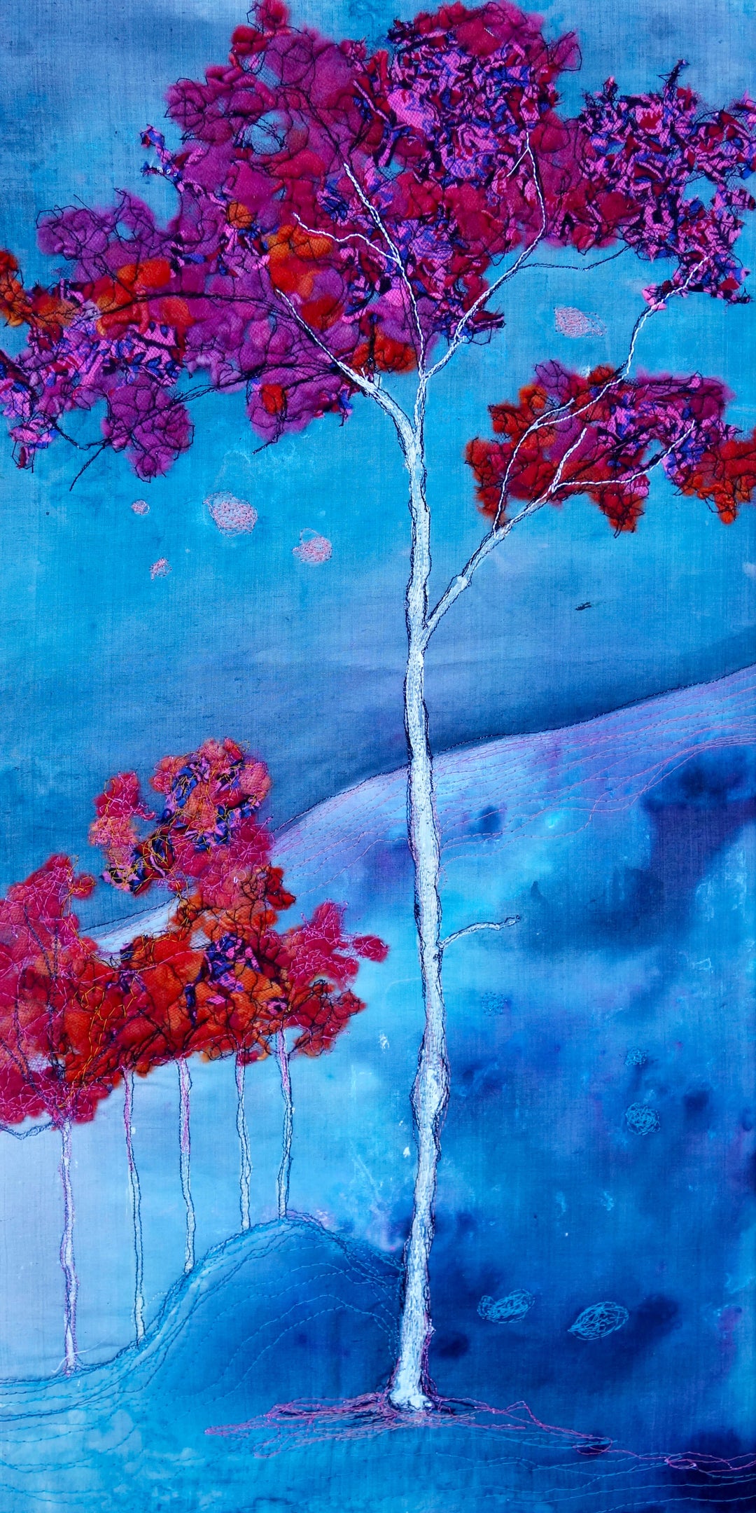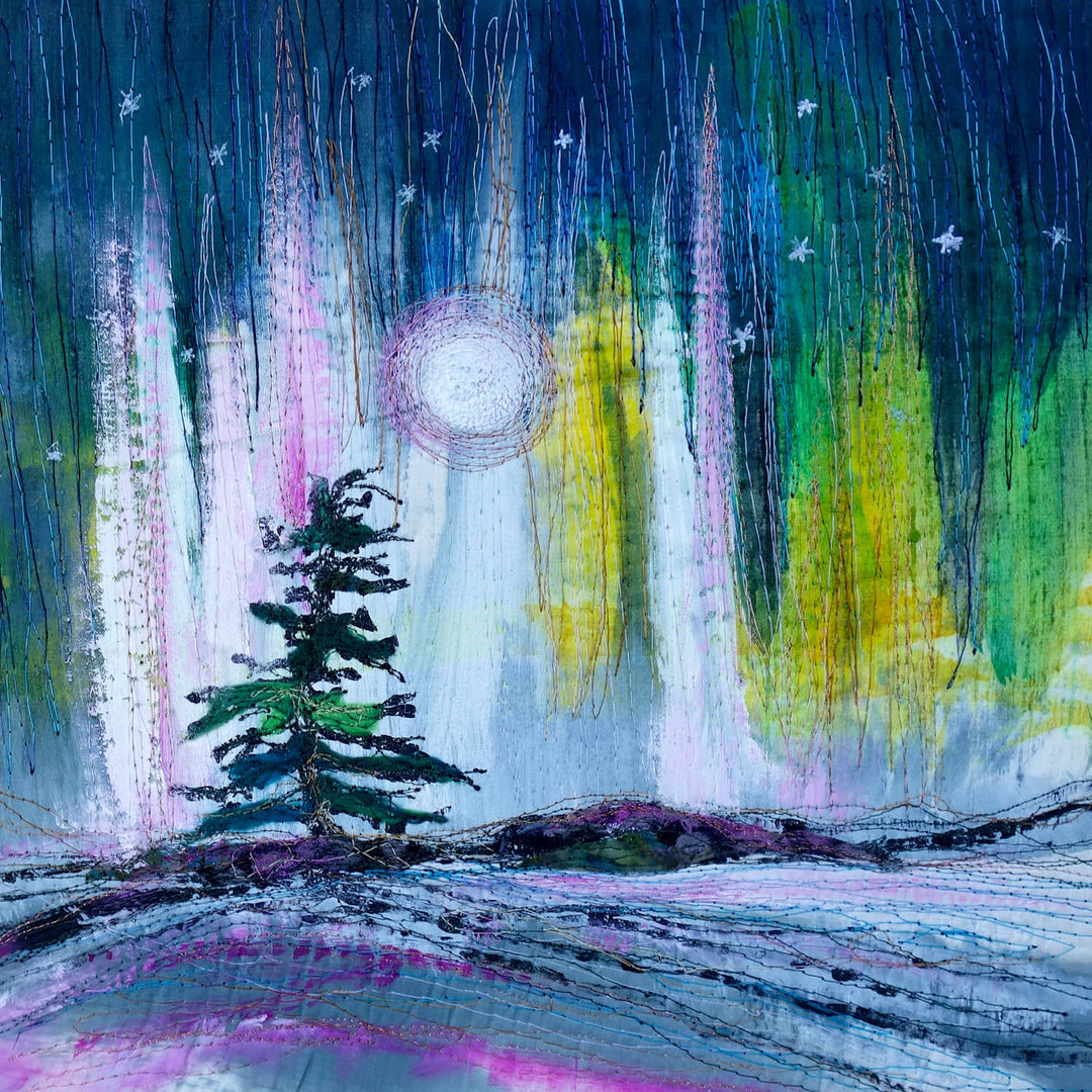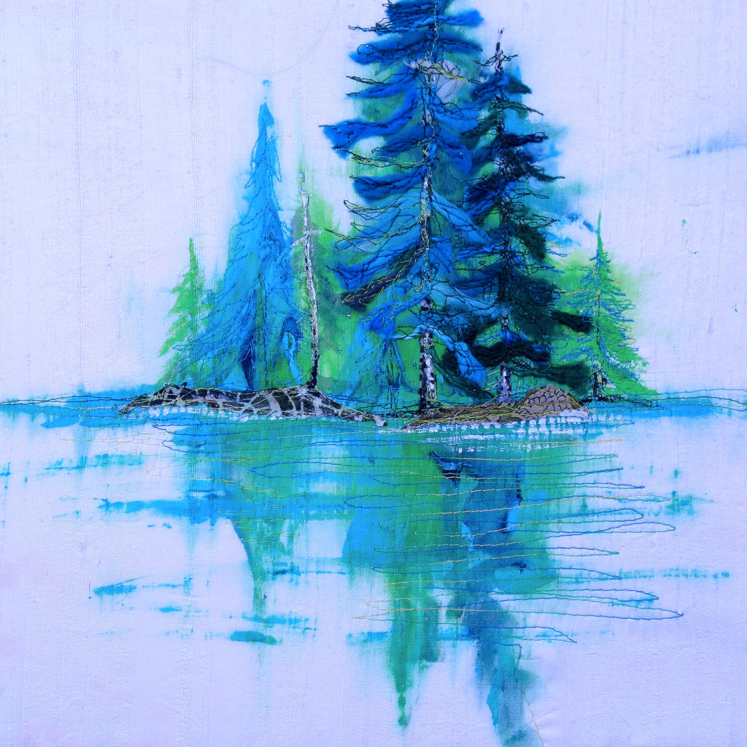 This new body of work gathers the many ways I moved through the landscape this year. Each piece follows its own thread, yet all share the same pull to slow down, look closely, and translate what the land offered into colour, stitch, texture, and light. Together, these works hold a year of noticing — the quiet moments, the shifting skies, the steady trees, the sudden wings.