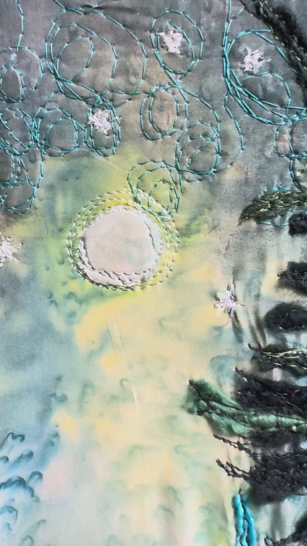 Medium: Textile with wool; hand dyed silk and acrylic paint