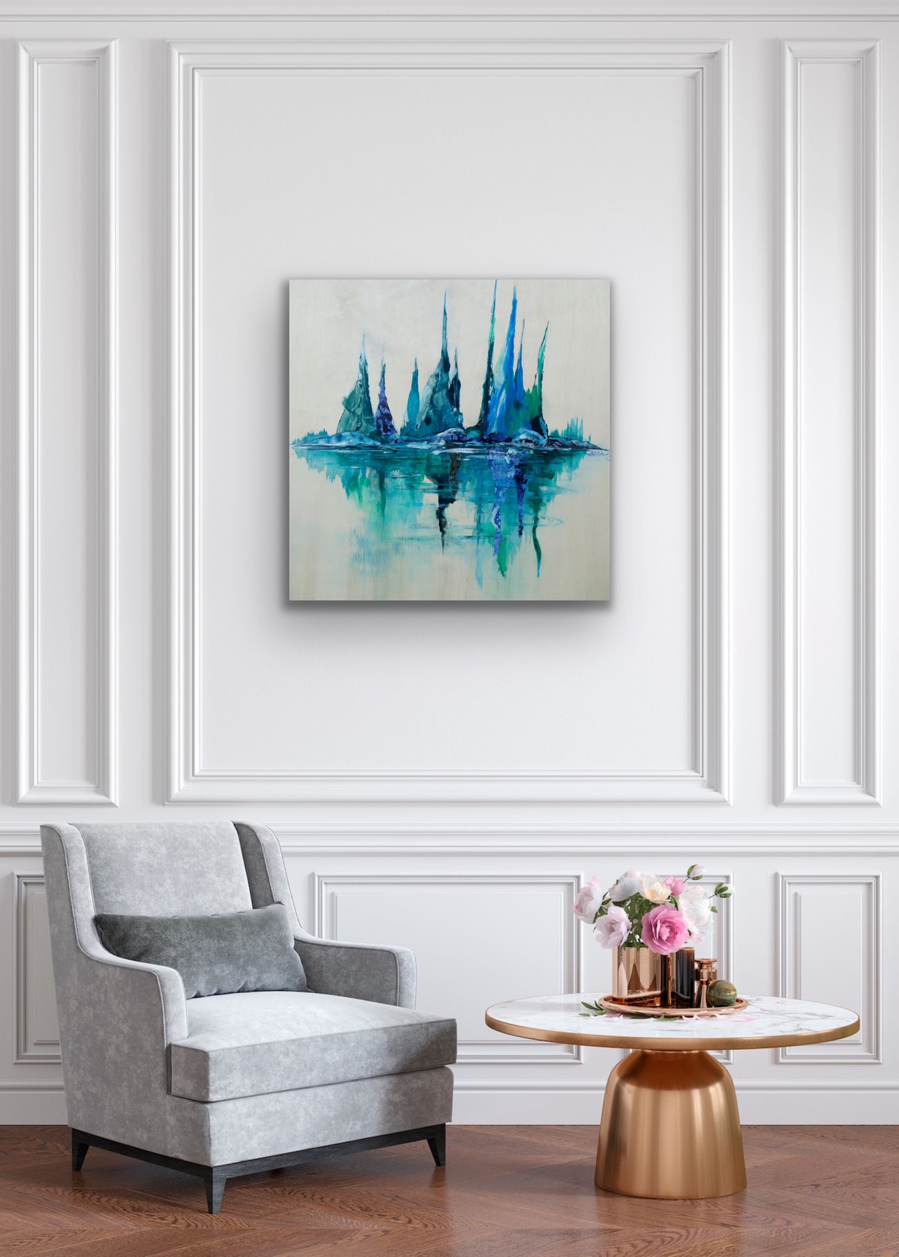Blues and greens shift and settle in the water’s depth. What is seen feels half-remembered, a soft inversion of sky and form. The calm holds its breath, and for a moment, reflection becomes its own quiet language.