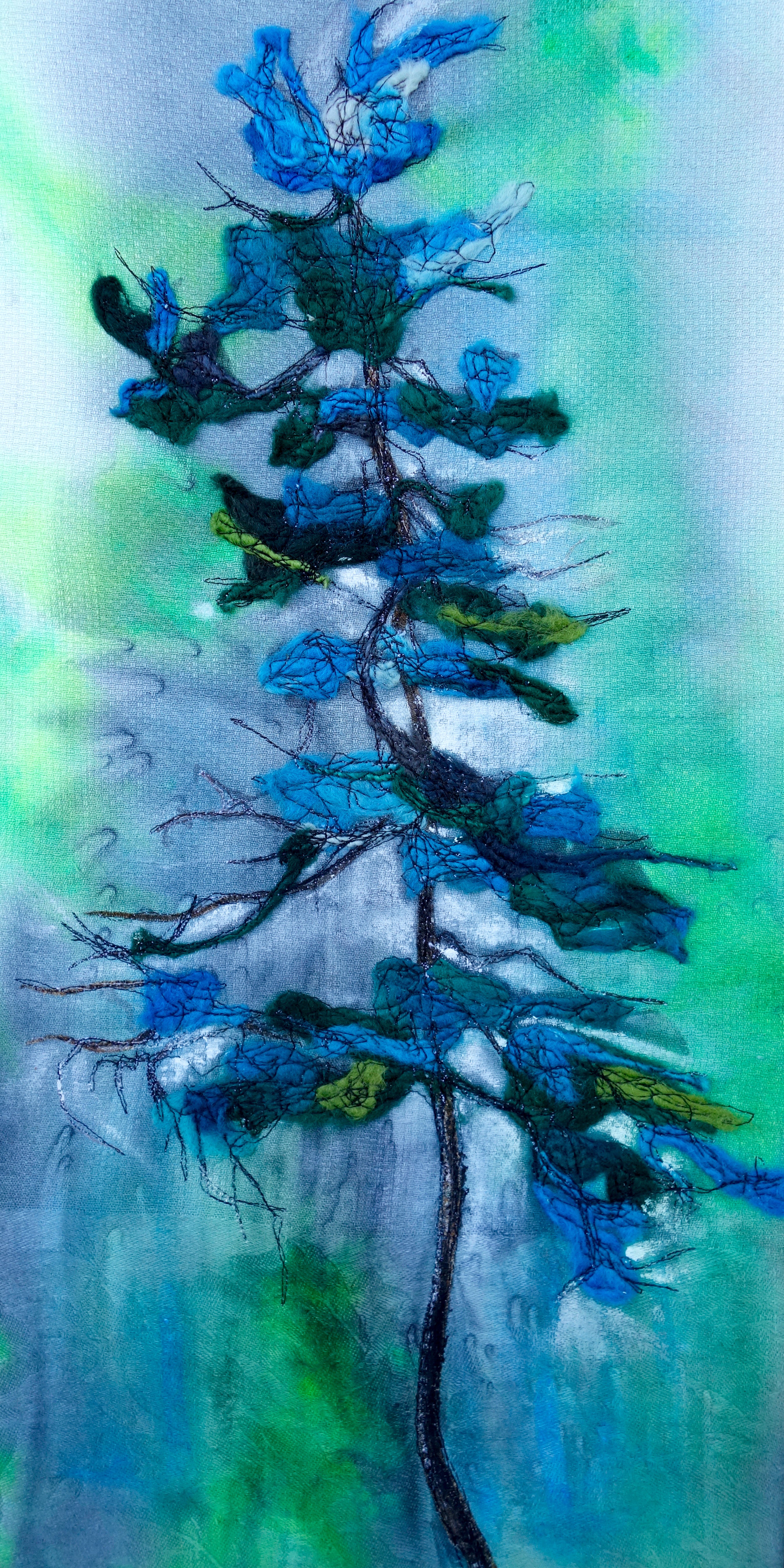 From the lines and crevices of the earth, small trees begin to lift themselves into being. Their forms emerge softly through stitched texture and shifting colour, as if shaped by the quiet forces that move beneath the surface. A gentle reminder that even in the deepest fractures, new life finds a way to rise.