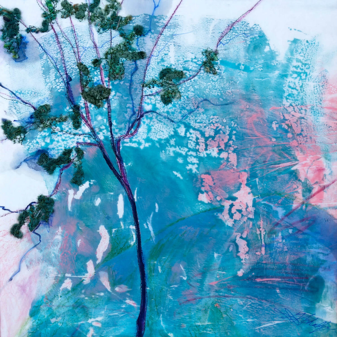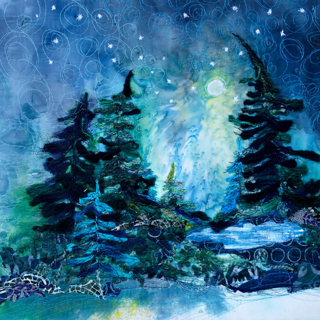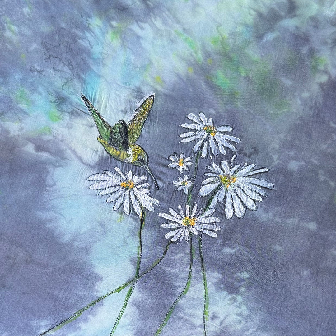 This new body of work gathers the many ways I moved through the landscape this year. Each piece follows its own thread, yet all share the same pull to slow down, look closely, and translate what the land offered into colour, stitch, texture, and light. Together, these works hold a year of noticing — the quiet moments, the shifting skies, the steady trees, the sudden wings.