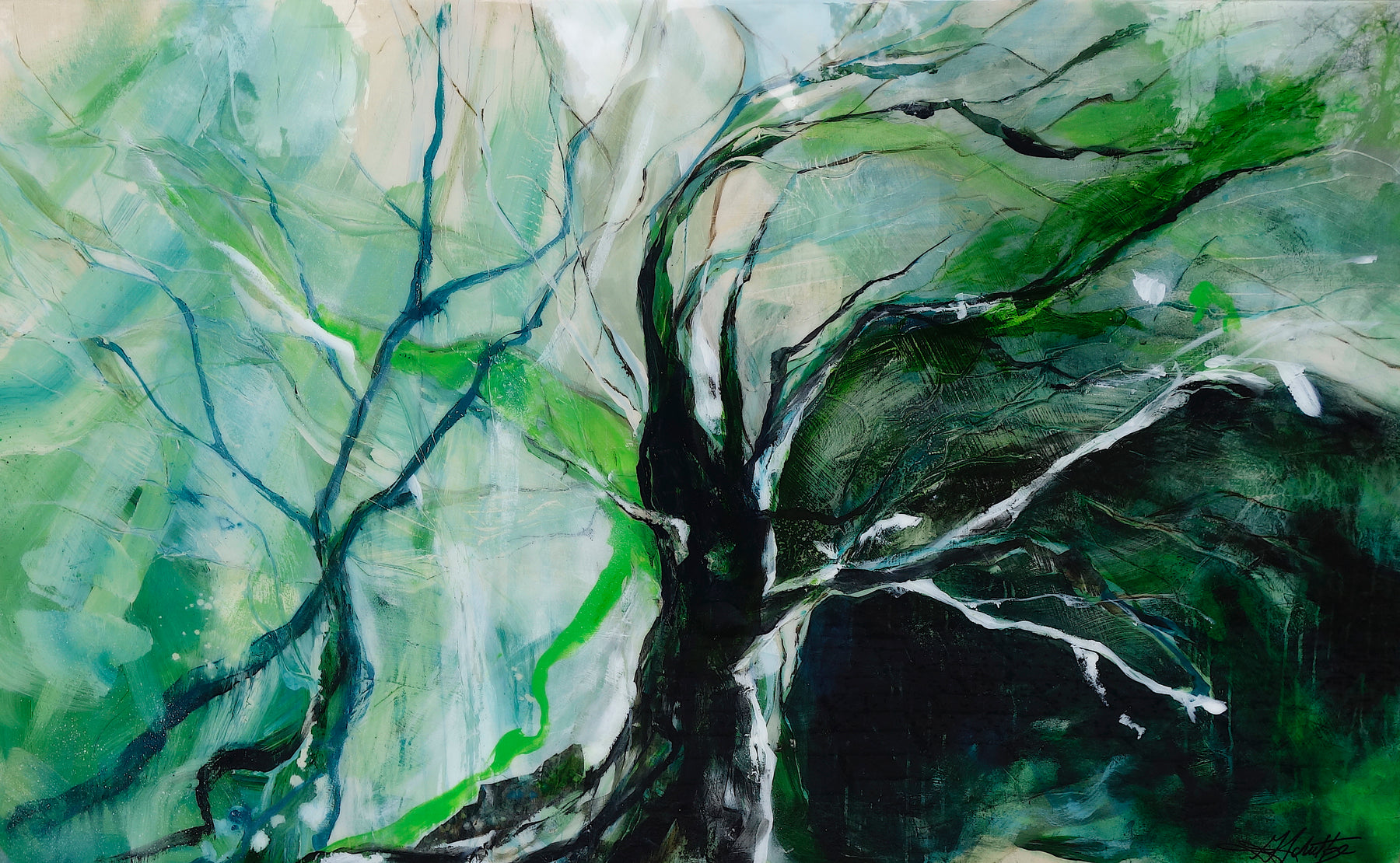 Mixed media on wood board with a museum-grade, high gloss epoxy finish